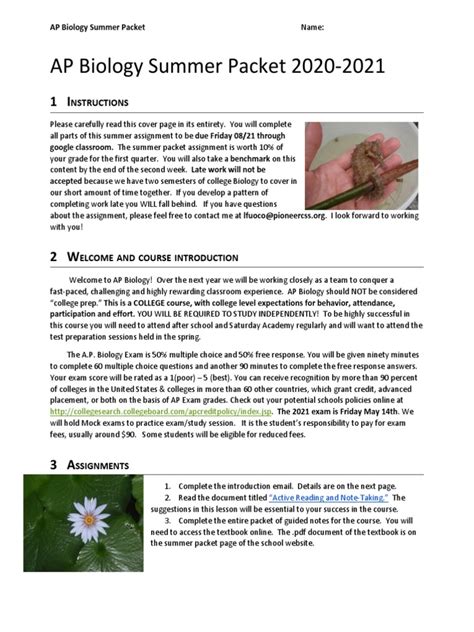 Read Answer Sheets To Ap Biology Summer Packet Doc